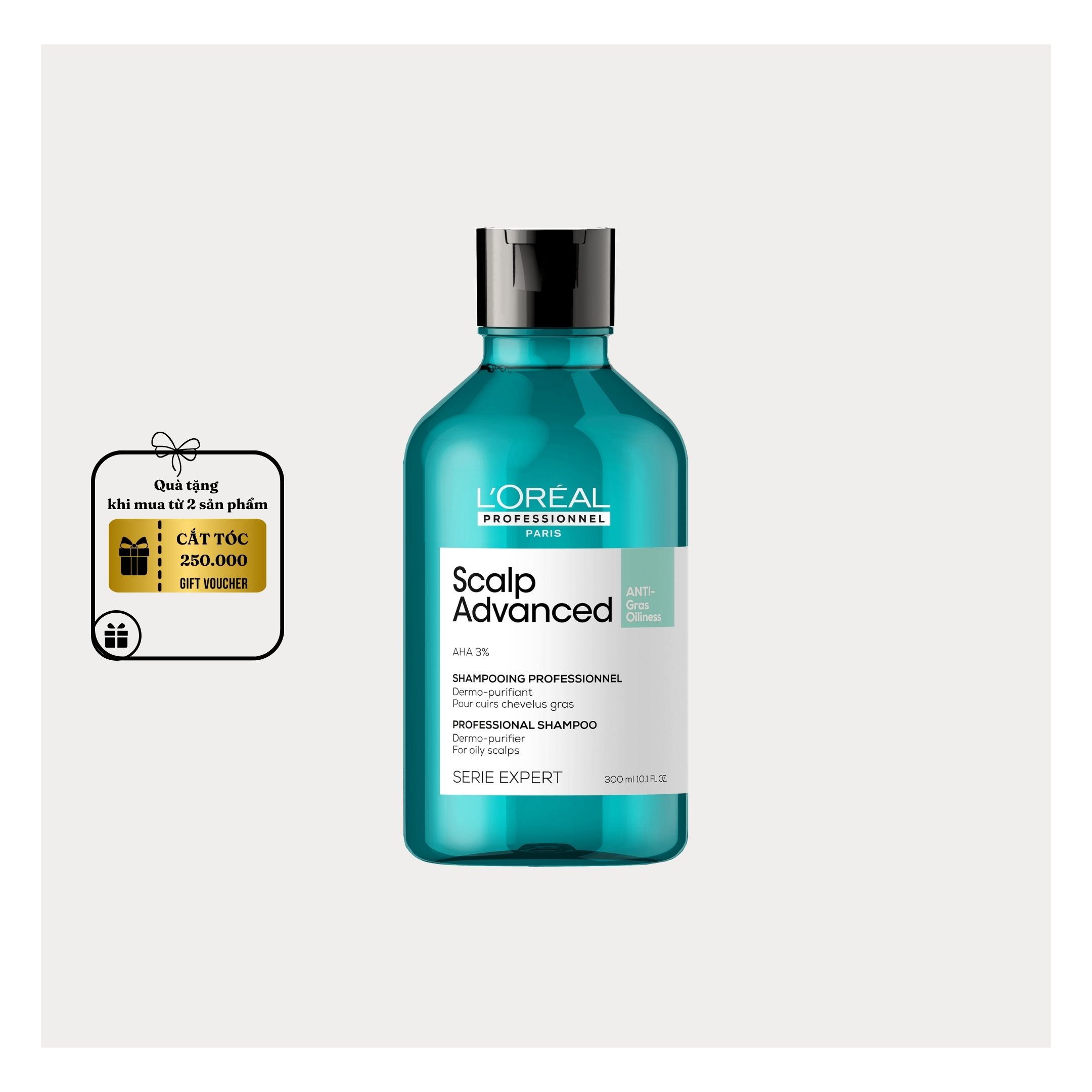 Dầu gội L'oreal Scalp giúp làm sạch tóc, giảm tiết bã nhờn dành cho da đầu dư dầu dùng cho các cửa hàng tóc chuyên nghiệp. Với công thức chứa AHA 3%, sản phẩm dầu gội Scalp Advanced Anti-Gras Oiliness có chất gel mỏng nhẹ, giúp thanh lọc da đầu và sợi tóc, giúp loại bỏ các cặn bẩn, mồ hôi và dầu thừa, mang lại cảm giác sảng khoái, sạch sẽ.