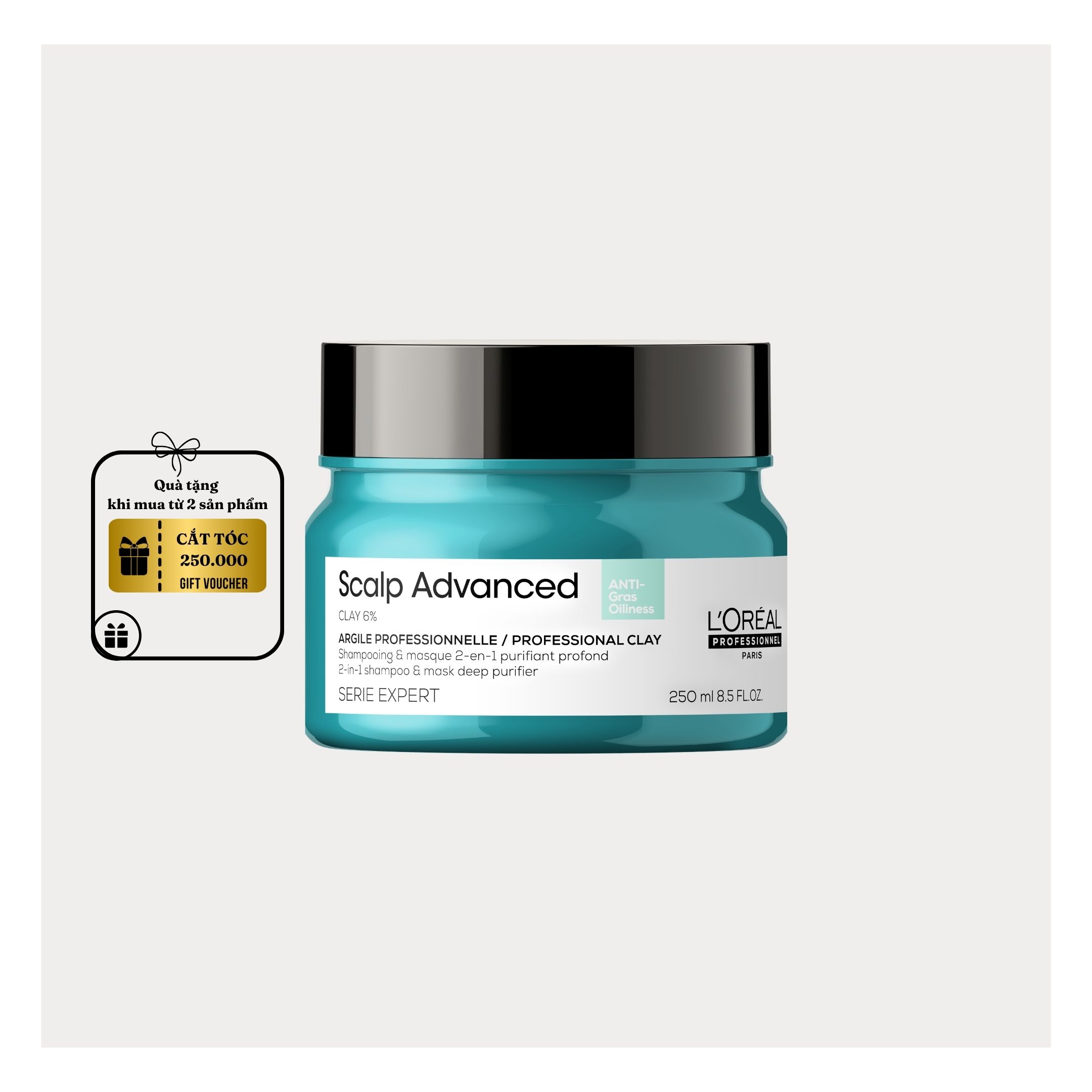 Dầu gội & mặt nạ đất sét 2 trong 1 giảm tiết bã nhờn cho da đầu dư dầu L'Oréal Professionnel Scalp Advanced 250ml