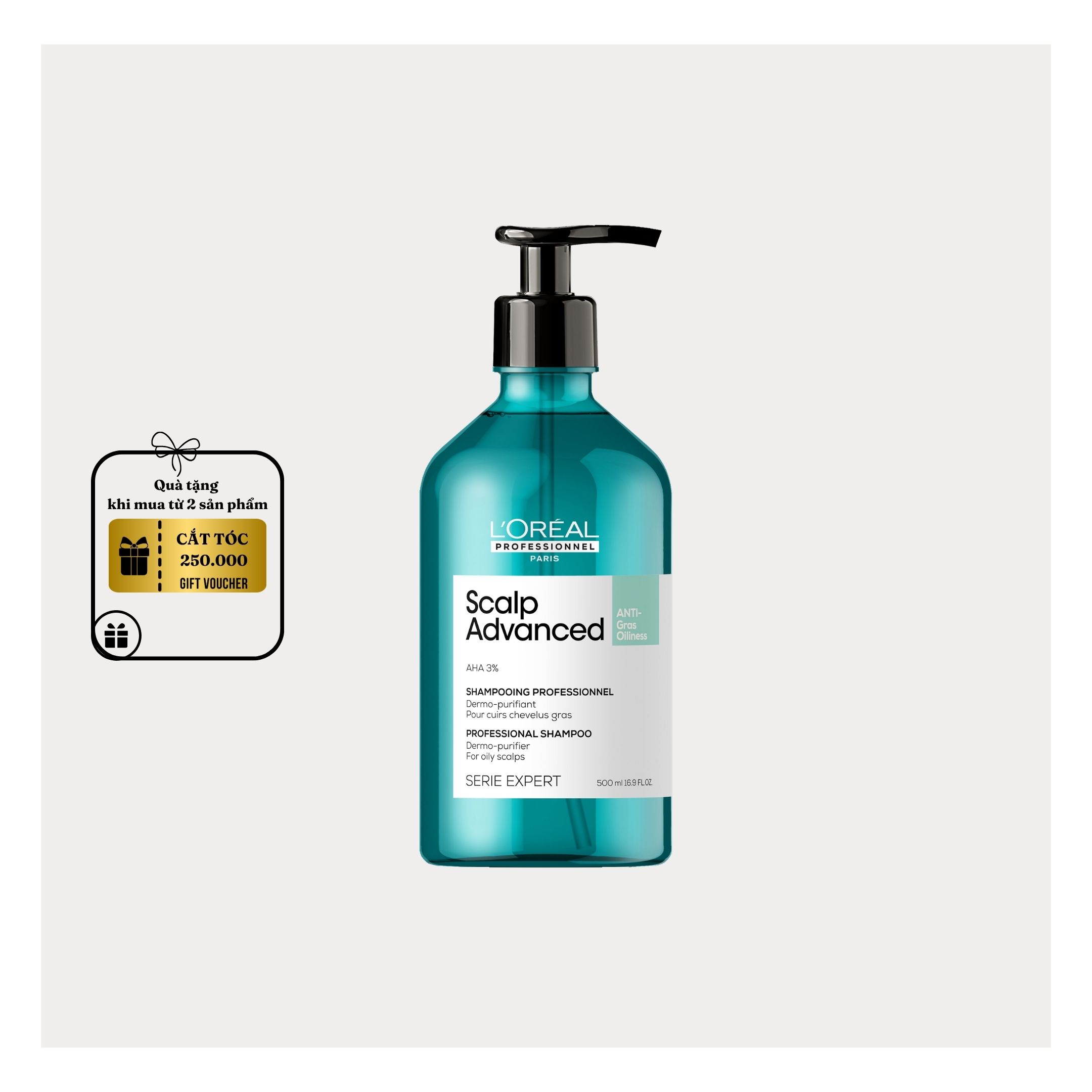 Dầu gội L'oreal Scalp giúp làm sạch tóc, giảm tiết bã nhờn dành cho da đầu dư dầu dùng cho các cửa hàng tóc chuyên nghiệp. Với công thức chứa AHA 3%, sản phẩm dầu gội Scalp Advanced Anti-Gras Oiliness có chất gel mỏng nhẹ, giúp thanh lọc da đầu và sợi tóc, giúp loại bỏ các cặn bẩn, mồ hôi và dầu thừa, mang lại cảm giác sảng khoái, sạch sẽ.