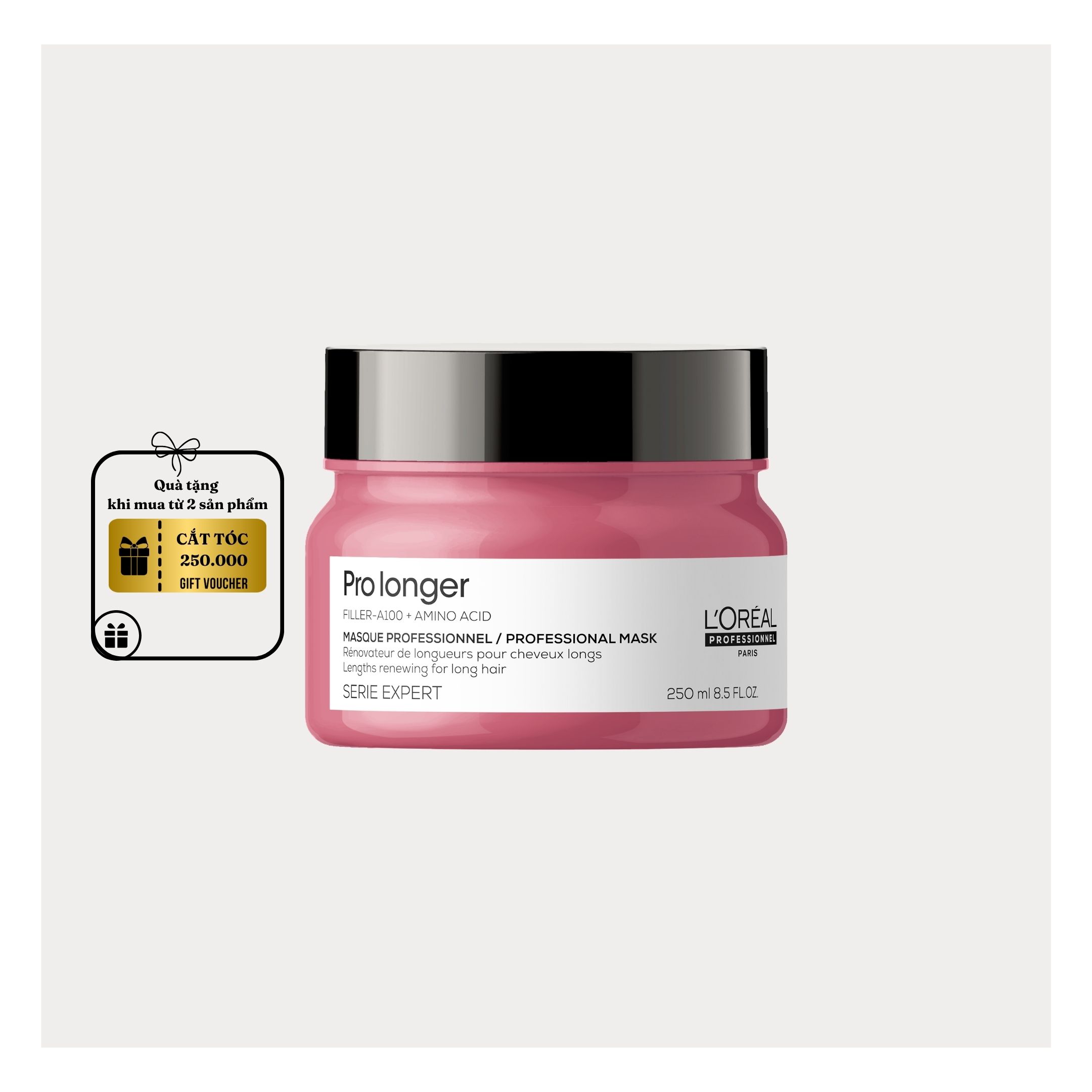 Hấp dầu L'OREAL PRO LONGER giúp tóc chắc khỏe, giảm đứt gãy và dài hơn L'Oréal Professionnel Serie Expert Pro Longer 250ml là sản phẩm được tạo ra dựa trên với công nghệ độc quyền FILLER A-100 cấu tạo bởi 2 thành phần, FILOXANE & PQ6, kết hợp cùng AMINO ACID, mặt nạ Pro Longer giúp tái tạo sức sống cho tóc, giúp tóc chắc khỏe, mọc dài hơn & ngăn ngừa đứt gãy, chẻ ngọn.