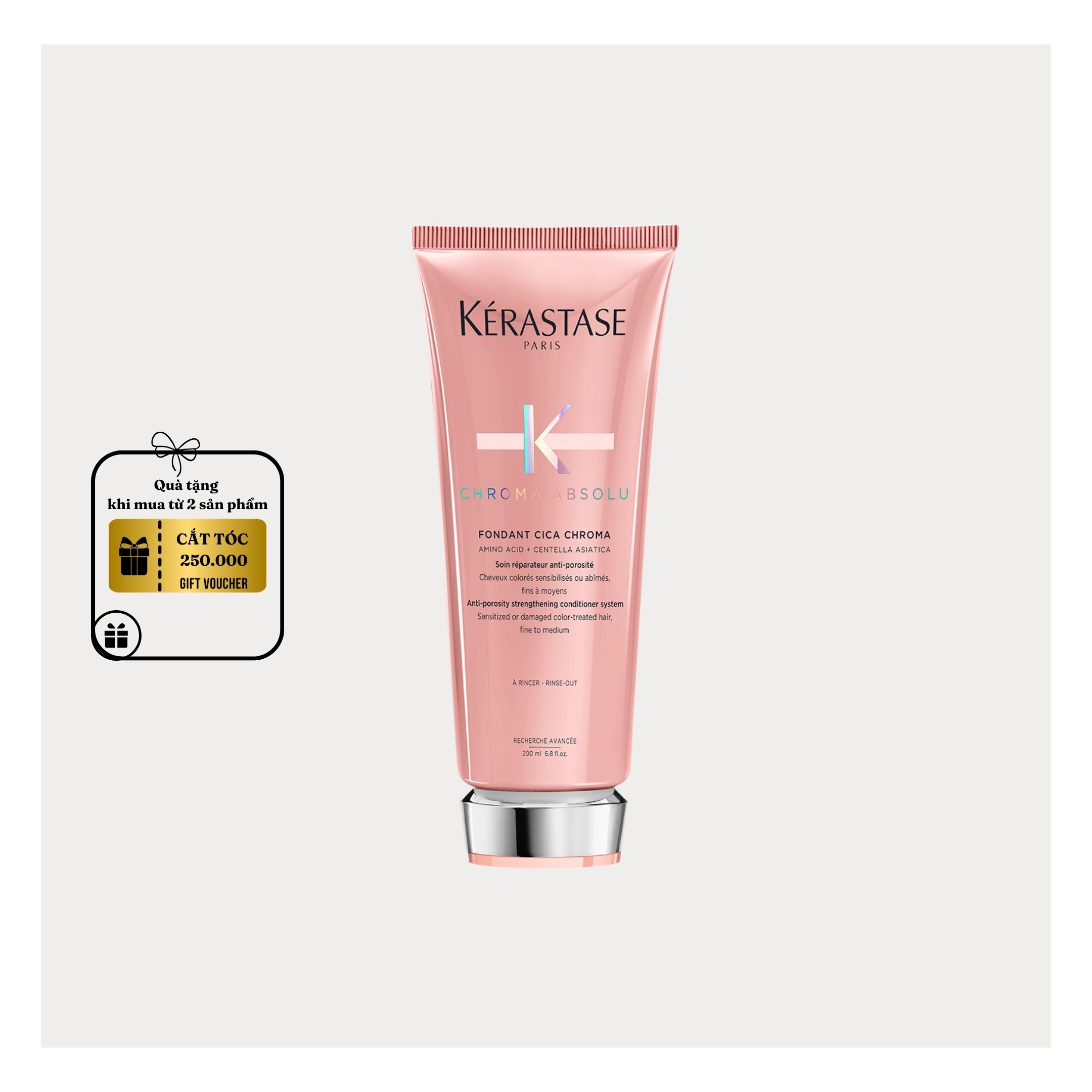 Dầu xả Kérastase Absolu Fondant Cica Chroma là dầu xả chuyên dùng giải quyết tình trạng tóc khô xơ, rối với sự kết hợp 3 loại Acid giúp bảo vệ màu toàn diện cho tóc nhuộm. Phục hồi toàn diện tình trạng hư tổn và đem đến vẻ mềm mại, suôn mượt, cam kết tóc không bết dính.